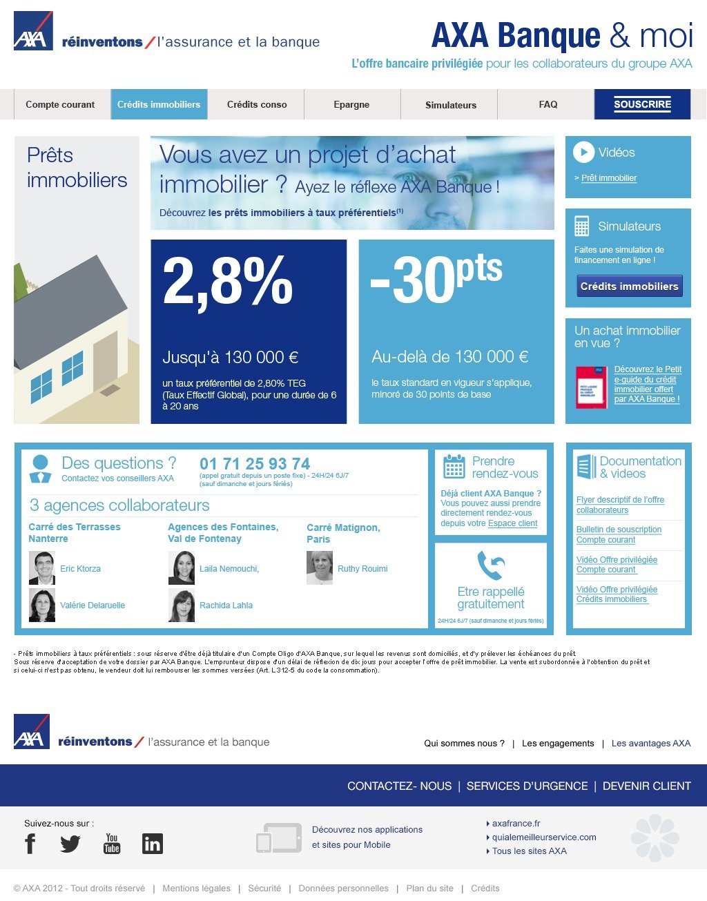 AXA BANQUE : Habillage interface du site d'accueil nouveaux clients.